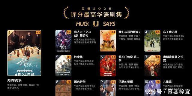 如果你看过豆瓣2025年度的剧集排行榜,会看到华语剧集年度榜单排在首位的是任素汐和高伟光主演的《无尽的尽头》,豆瓣目前的评分是8.5。