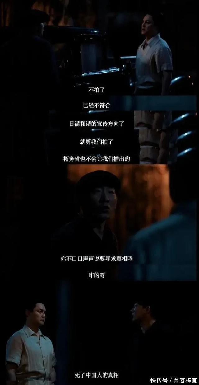 作为一个身处炼狱而有良知的人,其备受冲击的灵魂,自内而外被撕裂,无可奈何的破碎感,被章宇独具个人特色的演绎,诠释得淋漓尽致。 与之形成鲜明对比的是尹正饰演的小岛幸夫,这是一个崇尚“真实”的纪录片导演。他怀揣着“王道乐土”的伪善幻想来到东北,却发现自己镜头里的“五族协和”全是血腥的谎言。